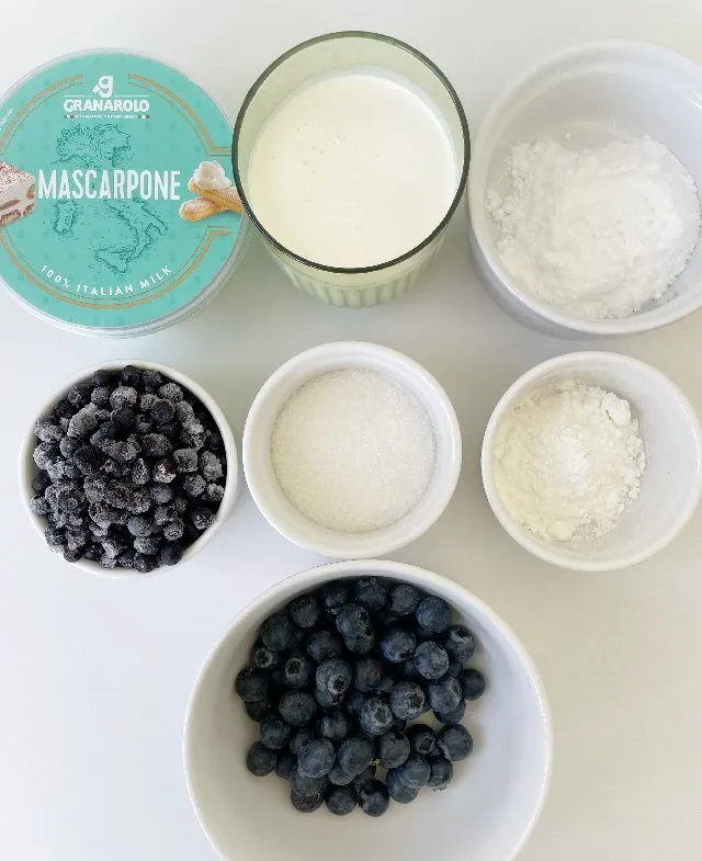 Kamēr kārtas cepjas, sagatavojiet melleņu pildījumu. Sajauciet cukuru ar cieti, apviļājiet mellenes šajā maisījumā.