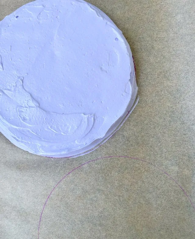 Uz cepamā papīra uzzīmējiet apļus ar 16-17 cm diametru. Man uz cepamā papīra ietilpst divas kārtas, tāpēc izmantoju divas paplātes un cepu trīs kārtas vienlaikus. Beiziet bezē aplī, izlīdziniet ar lāpstiņu vai silikona lāpstiņu. Kārtas jācep 100°C apmēram 1,5-2 stundas. Labāk cepiet ilgāk pie zemākas temperatūras, lai saglabātu krāsu. Kārtas iekšpusē paliks mīkstas.